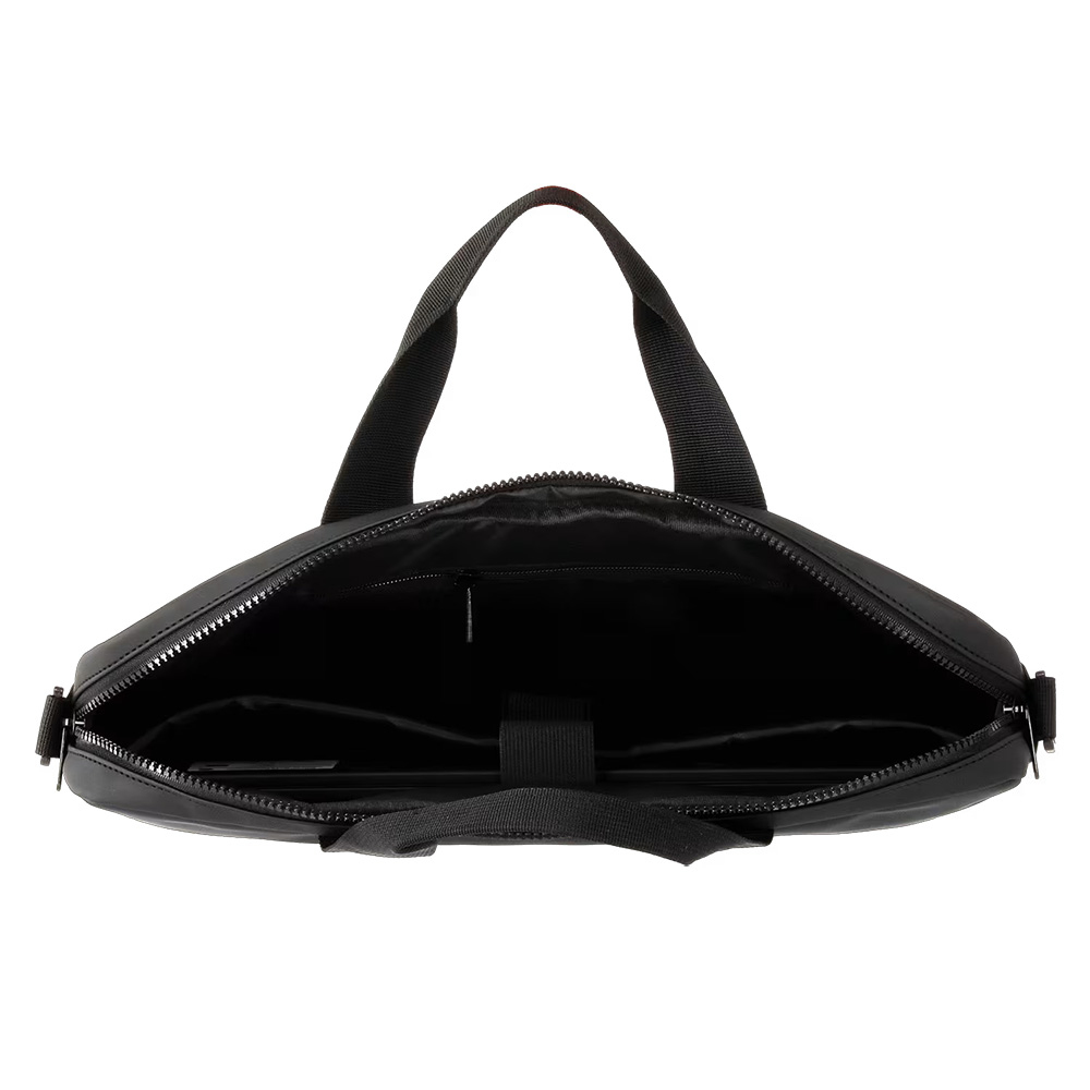 Cureaua reglabilă permite purtarea confortabilă pe umăr, în timp ce mânerele scurte sunt ideale pentru transport rapid. Pe lângă compartimentul principal pentru laptop, geanta include și câteva buzunare mai mici pentru accesorii, cum ar fi încărcător, mouse, documente sau telefon mobil.