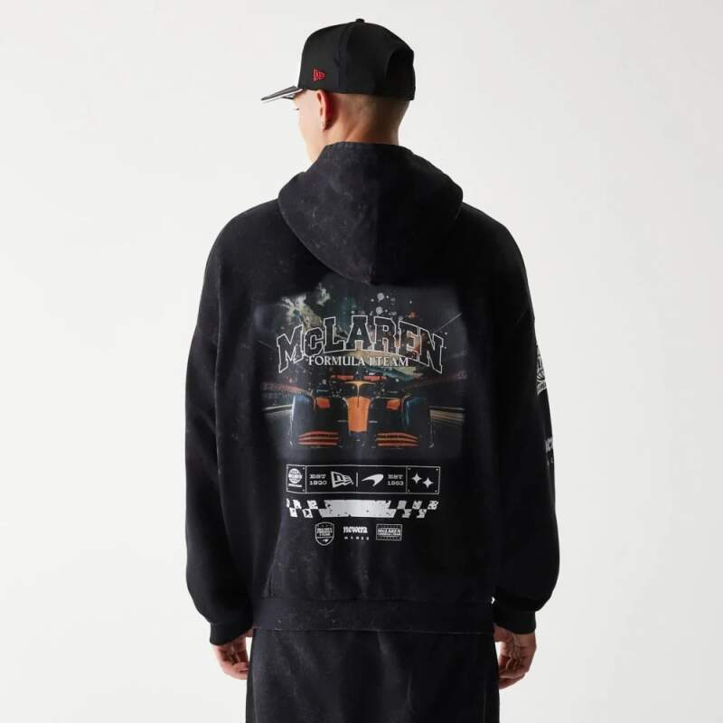 Mclaren Honda hanorac de bărbați cu glugă zip GRPHC washed black F1 Team 2026