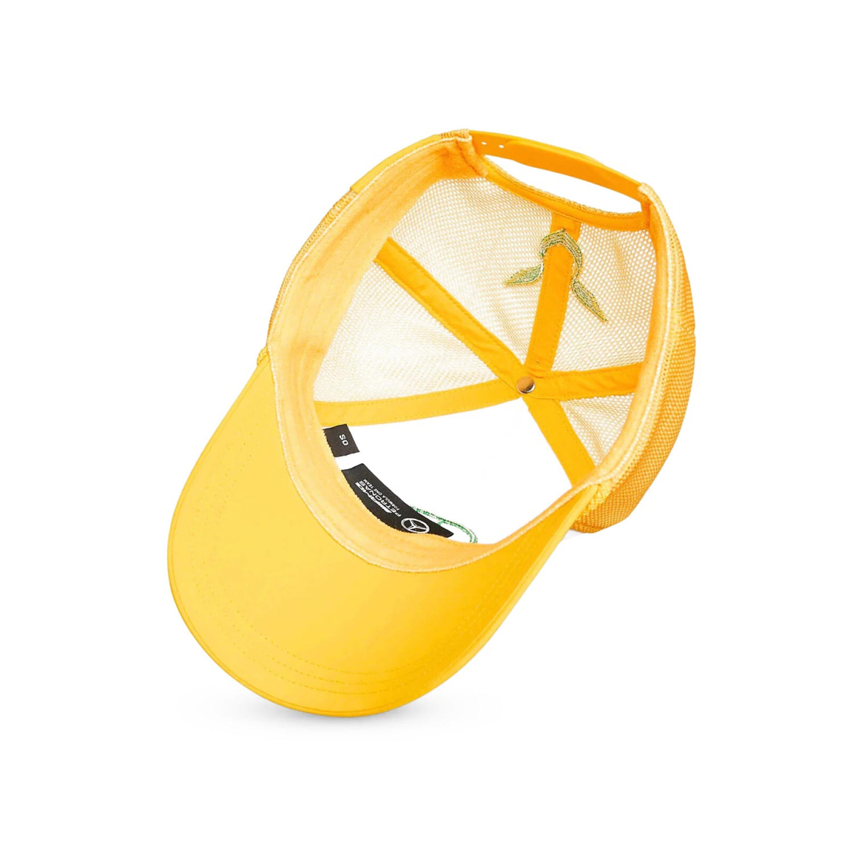 Această șapcă are o croială clasică și este dotată cu un logo verde Mercedes-Benz cu trei colțuri brodat pe partea frontală. Combinația de culori galben și alb oferă șepcii un aspect modern și proaspăt. Pe partea din spate se află un logo mai mic "LH" (Lewis Hamilton) și o cataramă de plastic pentru ajustarea ușoară a mărimii. Interiorul șepcii este decorat cu o căptușeală contrastantă, care oferă șepcii un aspect elegant.