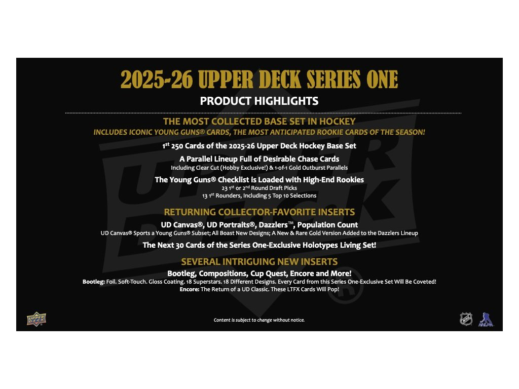 NHL cutii Cărți de hochei NHL 2025/26 Upper Deck Series 1 Hobby Box