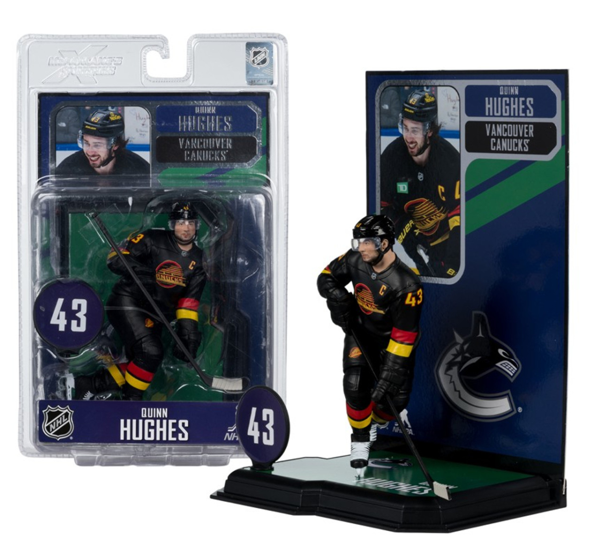 Vancouver Canucks figurină Quinn Hughes #43 SportsPicks Black Jersey